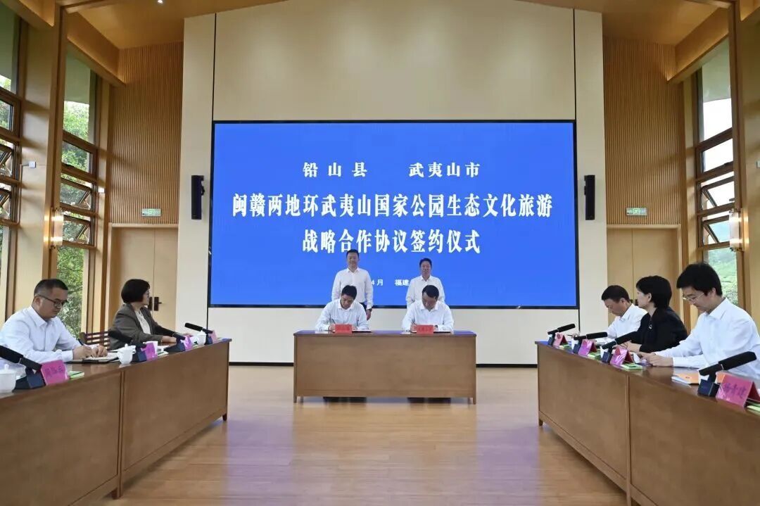 4月24日,武夷山市与铅山县《闽赣两地环武夷山国家公园生态文化旅游战略合作协议》签约仪式在武夷山举行。铅山县委书记周华兵,南平市委常委、武夷山市委书记杨青建出席并讲话。武夷山市委常委、市政府副市长白海鹏主持。 签约仪式上,武夷山市委常委、市政府副市长人选廖轶斌与铅山县委常委、常务副县长罗剑锋签订合作协议。两地相关部门围绕环武夷山国家公园保护与建设等情况进行了深入交流。 周华兵对武夷山市长期以来的关心支持表示感谢。他说,当前铅山提出“南联北融”的发展思路,推动南北武夷从山水相连走向发展相融,努力实现山南山北一体发展。武夷山市在国家公园保护建设、生态治理、文旅融合、茶产业发展等方面取得了亮眼成绩,值得铅山学习借鉴。两地地缘相近、人缘相亲、文缘相通,合作空间广阔。希望双方以此次签约为契机,深化协同联动、共护国家公园、共促文旅融合、共推人才交流,携手擦亮“武夷”品牌,汇聚高质量发展强大合力。 杨青建对铅山县领导一行到武夷山考察指导、传经送宝表示欢迎和感谢,并介绍了武夷山市在生态保护、绿色发展、民生改善等方面的情况。他说,武夷山市与铅山县两地山水相连、生态一体、文化同源,是唇齿相依的近邻、守望相助的伙伴、协同发展的战友,希望以此次合作为新起点,落实好联席会议等制度,加强常态化交流协作,在共守生态、共促文旅、共拓市场、共建机制上持续发力,让武夷山这个世界瑰宝在闽赣携手守护下,成为跨区域遗产保护与绿色发展的典范。(徐超 林至含) |